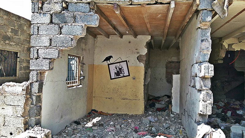 هنرمندانی که فارغ از چنین پیش‌فرض‌هایی هستند قربانیان نادیده را در معرض دیدگان ما قرار می‌دهند. عکس خانوادگی 1 (2005)، اثر مراد سوبای، اتاق خانه‌ای سیمانی در صنعا، یمن، را نشان می‌دهد که بمب به آن اصابت کرده است. بر روی دیوار پشتی، سوبای تصویر خانواده‌ای را ترسیم کرده است: والدین ایستاده‌اند و در کنارشان دو کودک قرار دارند و نوزادی هم در آغوش مادر است. تصویر در اثر انفجار اندکی کج شده است. کلاغ بزرگ شومی بر روی قاب نشسته و به آنها خیره شده است و به این ترتیب خبر از سرنوشت ناگوار آنها می‌دهد. عکس خانوادگی 1 یکی از 18 تصویر در مجموعه‌ی «ویرانه‌ها»ی سوبای است که در مه 2015 در منطقه‌ی بنی حواطِ صنعا اجرا شده است، جایی که به گفته‌ی او «حملات هوایی بیش از هفت خانه را ویران کردند و 27 غیرنظامی، از جمله 15 کودک، را کشتند.»