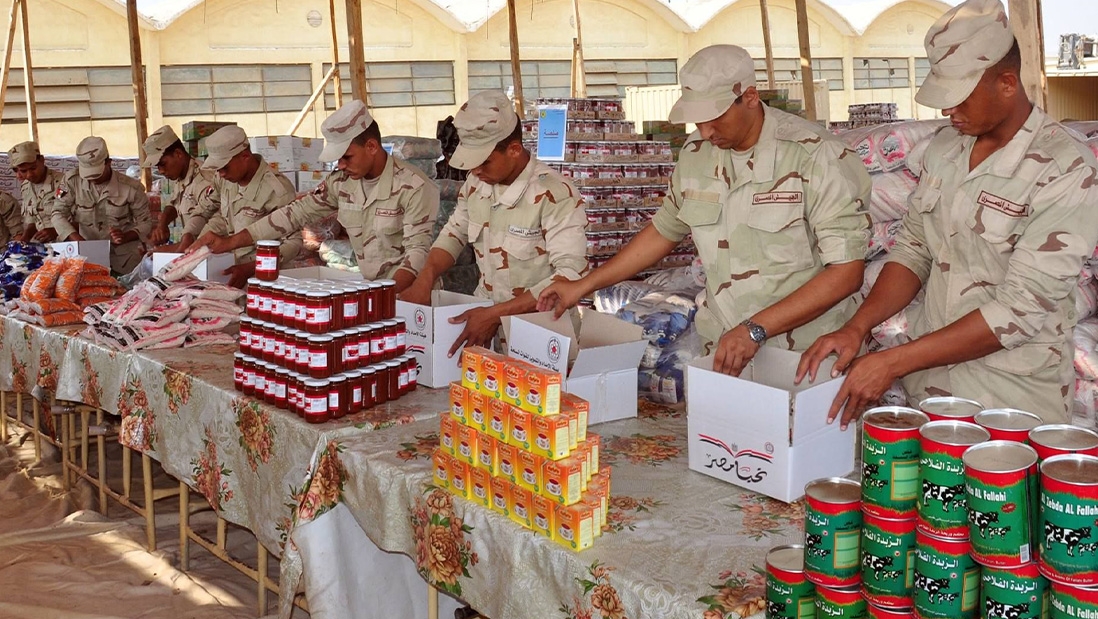 اجرای برنامهی کارتهای هوشمند یارانه توسط ارتش مصر: سربازان مصری بستههای غذا را آماده میکنند