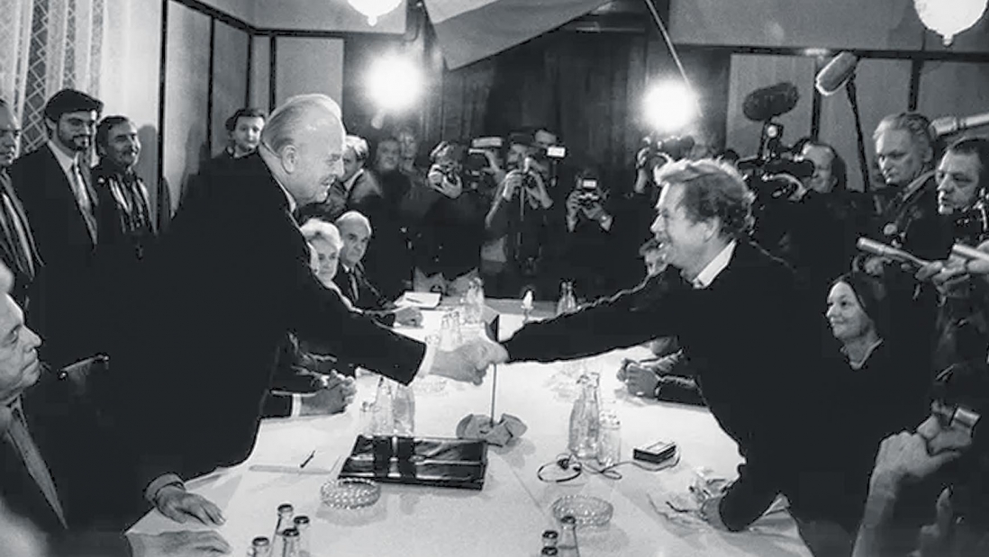 گاهی مردم میگویند که من در زمینهی سیاست خارجی بیش از حد آرمانخواه، خیالباف، فیلسوف، شاعر و آرمانشهرباورم. نمیخواهم تصورات یا احساساتِ دیگران دربارهی خودم را انکار کنم. فقط میخواهم بگویم که اگر امروز چکسلواکی در دنیا احترام و آبرویی دارد، یکی از علل آن عبارت است از پایبندی به ضوابط اخلاقی و انسانی در نحوهی براندازیِ کمونیسم در اینجا، و سمتوسوی اخلاقیِ سیاست خارجیمان.