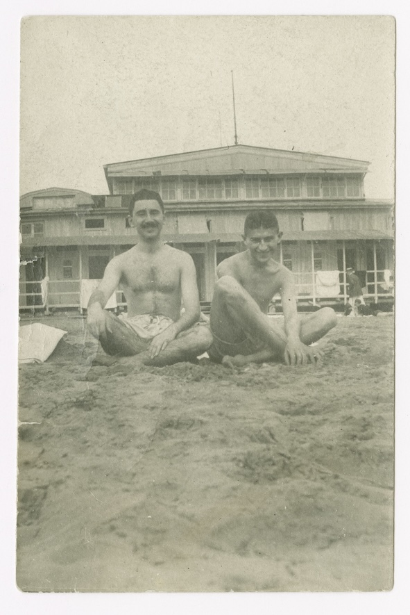 فرانتس از عکسهای دستهجمعی و خانوادگی هم انتقاد میکرد. دربارهی عکسهایی که در بیمارستان و با بیماران دیگر گرفته میگوید «نمیدانم چرا در همهی عکسها کجومعوج هستم.» کافکا میدانست که جلوی دوربین حس خوبی ندارد. از طرف دیگر، عکسهایی از او هست در ونیز با لباس شنا. در آن عکسها رها و بیقید است. رو به دوربین میخندد و چهرهاش گرفته نیست. گویا شرایطی وجود داشته که از عکاسی آنقدرها هم متنفر نبوده. کخ میگوید: «فکر میکنم چیزی که دوست نداشت عکسهای رسمی و صحنهآراییشده بودند.»