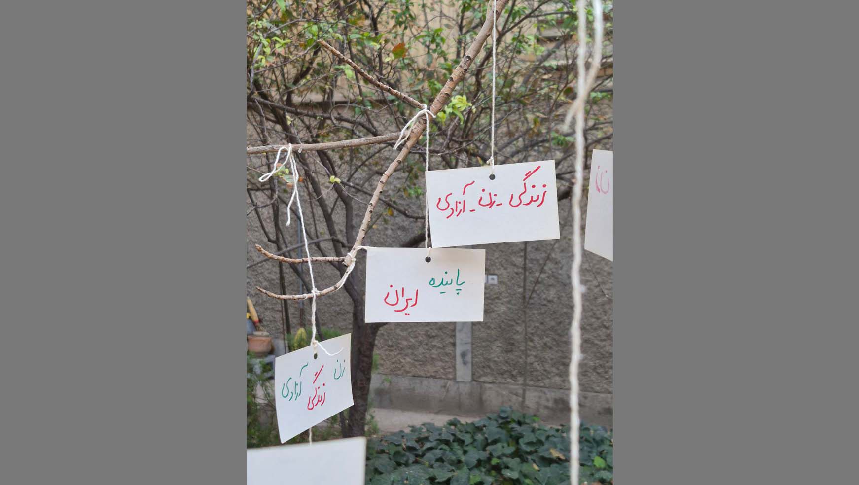 بستگان و دوستانِ عزیزی دارم که در این روز صبح زود برای کمک میآیند. دستی گلها را در گلدانها میچیند، دستی کنارِ عکسها و جایِ قتلها شمعدان میگذارد، صندلیها را میچینند، بساطِ چای و پذیرایی را آماده میکنند، حیاط را میروبند و به درختِ خشکی که یادگارِ مادرم، پروانه است، برگههای کوچکی میآویزند که رویشان نوشته: «پاینده ایران»، «دادخواهی»، «زن، زندگی، آزادی».