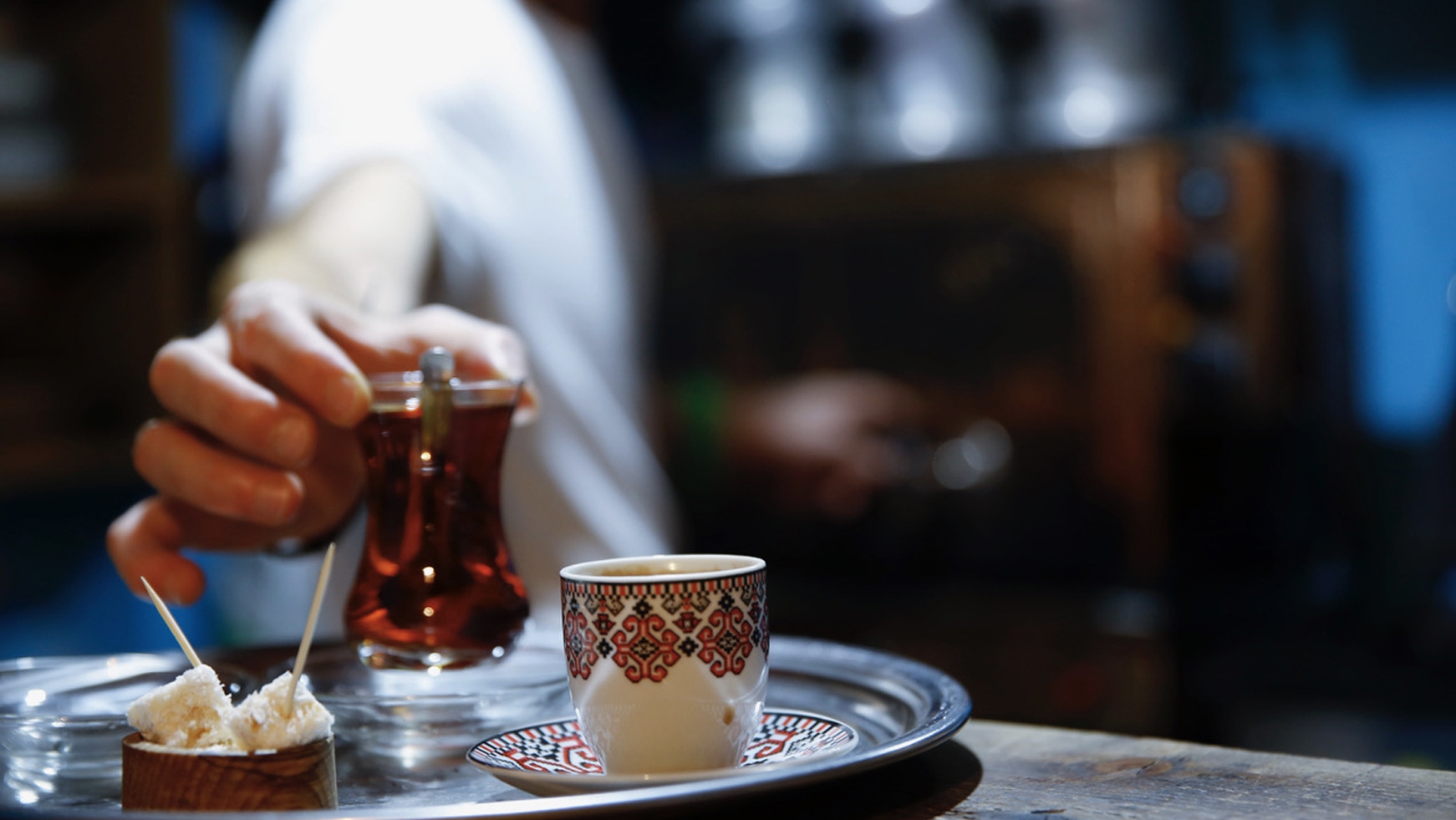 بیتردید وقتی از قهوهخانه نام میبریم نمیتوان از چای صحبت نکرد. هر چند چای کمتر از یکصد سال است که در ترکیه رواج یافته اما نوشیدنی ملی به شمار میرود و ترکیه بیشترین حجم سرانهی نوشیدن چای را در دنیا دارد. البته تا صد سال گذشته نوشیدنی اصلی قهوهخانهها نه چای بلکه قهوه بود که در دوران عثمانی عمدتاً از یمن به ترکیهی امروزی وارد میشد.
