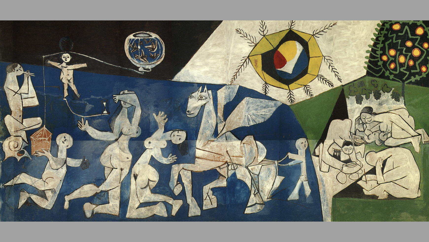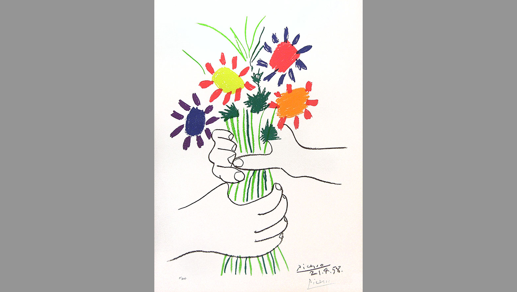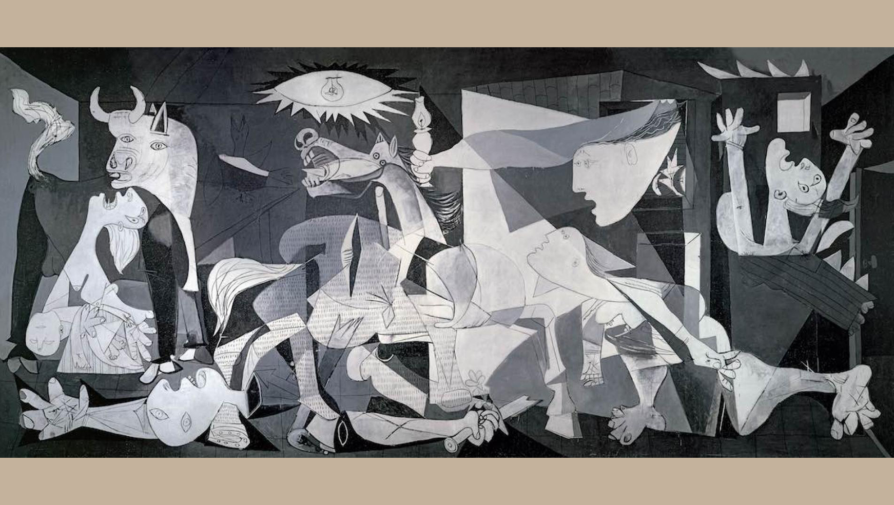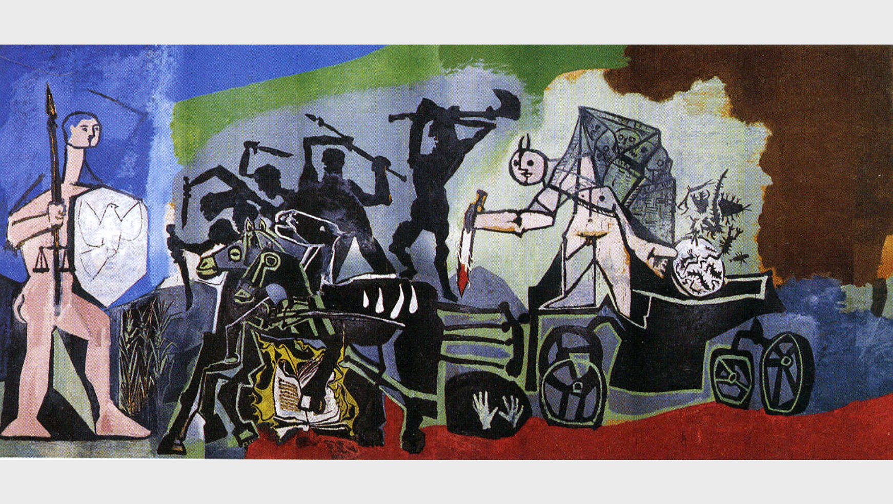 پابلو پیکاسو یکی از برترین و تأثیرگذارترین هنرمندان قرن بیستم، از سیاسی‌ترین هنرمندان نسل خود بود و بخش مهمی از زندگی و هنر خود را وقف اعتراض به جنگ و تلاش برای عدالت و صلح جهانی کرد. پیکاسو طرح‌ها و نقاشی‌های بسیاری (بیش از صد طرح اولیه یا اثر کامل) با موضوع جنگ و صلح از خود بجا گذاشته که معروف‌ترین آن‌ها نقاشی گرنیکاست. گرنیکا نام شهر کوچکی در شمال اسپانیا است که در جنگ‌های داخلی اسپانیا، هواپیما‌های آلمان نازی به حمایت از ژنرال فرانکو آن را بمباران کردند، و نقاشی پیکاسو تصویری از فجایع این بمباران‌ است.