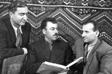 از راست: امینه اودال نویسنده و پژوهشگر کرد ، جاسم جلیل و حەجی جندی، نویسنده و گویندهی اخبار رادیو